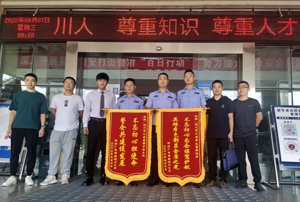 利川支公司:守土有责保安播 警企共建促发展 近日,湖北广电网络利川支公司干部员工专程到利川市公安局城区都亭派出所赠送锦旗,对都亭派出所长期以来为广电网络安全播出、安全生产给予的大力支持表示感谢。 党的二十大即将召开,强化落实安全生产、全力保障安全播出安全传输是广电网络作为党网国企的光荣使命,也是公司当下的重点工作。一直以来,都亭派出所立足辖区、全警动员、主动作为,对城区广电网络主干线路及相关设施设备进行安全巡逻,对辖区内的市政工程施工现场责任单位及工作人员进行安全宣讲,确保广电网络传输链路不被破坏,全力保障了广播电视的安全播出和安全传输,为及时准确地把党和政府的声音传递到千家万户提供了坚强保障。   2022-09-26