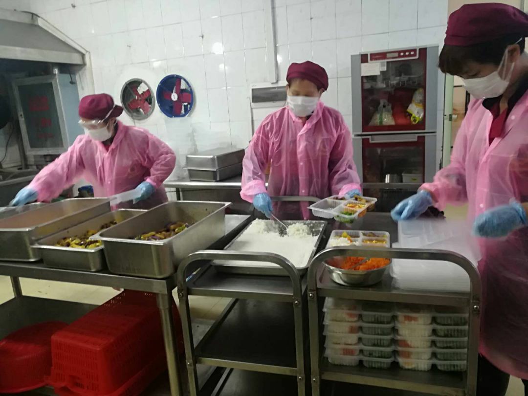 安全饮食,使用一次性饭盒分餐,派专人送餐,避免人员集聚,并且优先送往城区公司