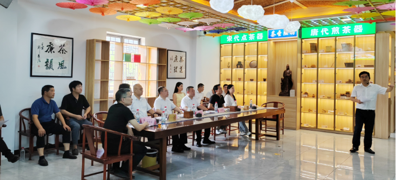 (调研组在佛子山镇数智茶企试点现场听取了数字乡村建设汇报)