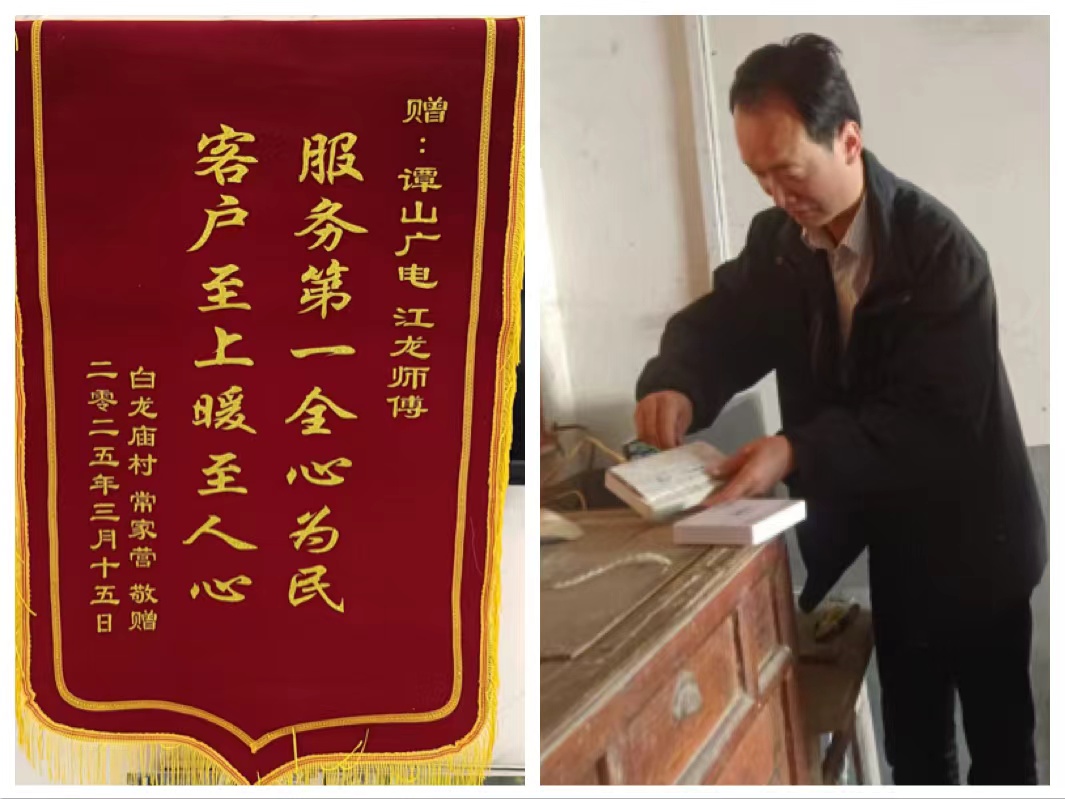 “江师傅,这快递是外地寄来的,您快看看!”3月25日,湖北广电网络十堰分公司郧阳支公司谭山营业部的片区经理江龙收到了一个沉甸甸的包裹。拆开一看,一面鲜红的锦旗跃入眼帘——“服务第一全心为民 客户至上暖至人心”。电话那头,用户常老先生的儿子感激地说:“这些年,我爸妈家里的电视、手机一出问题,全靠江师傅你跑前跑后解决。连我这个亲儿子都做不到‘随叫随到’,你比我家里人还贴心!”这面跨越千里定制的锦旗,不仅承载着常家祖孙三代对江龙的感激之情,更映照出一位基层广电人十年如一日的初心。