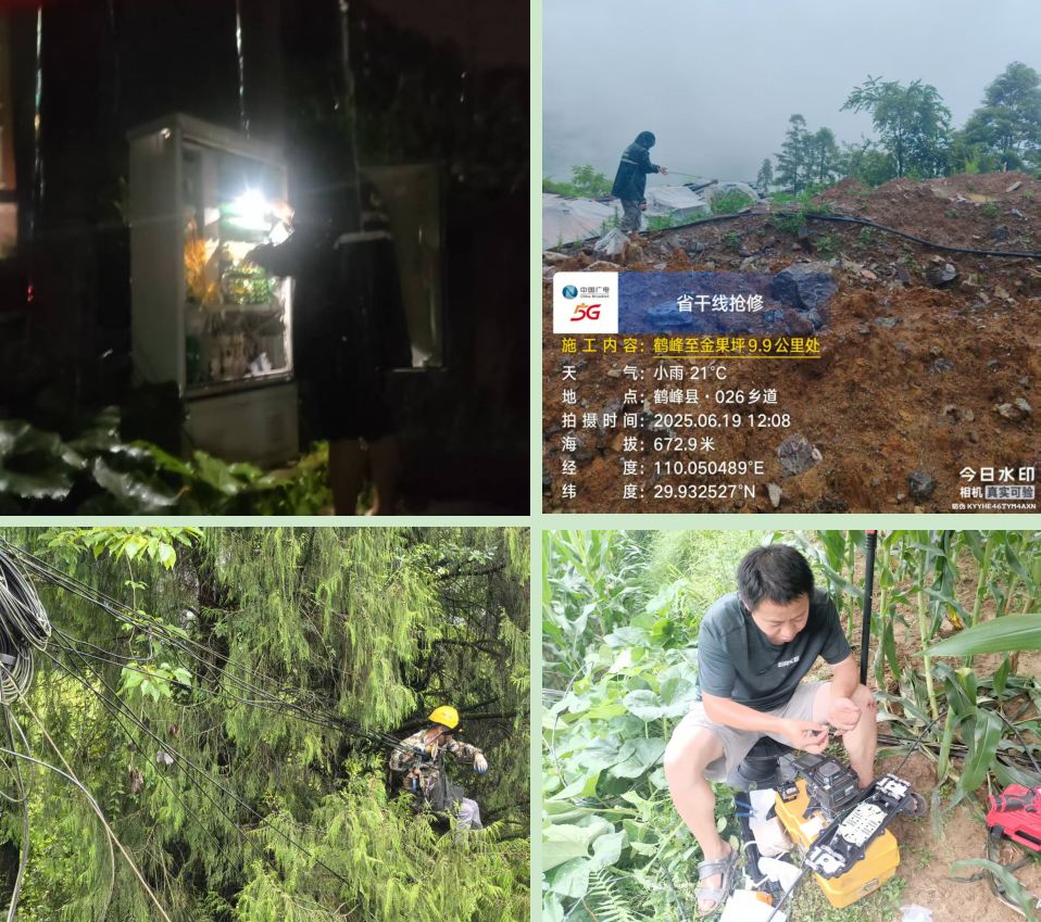 “当时雨下得特别大,山体随时有滑坡的危险,但我们顾不上那么多,心里只有一个念头,就是尽快让用户恢复信号。” 参与抢修的技术骨干回忆道。据统计,截至6月23日上午,在此次雨灾抢险中,宣恩、来凤、鹤峰三家支公司累计出动应急人员300余人次,应急车辆 60余辆次,已抢通断纤50处,成功恢复了6100余用户的电视信号和宽带网络。